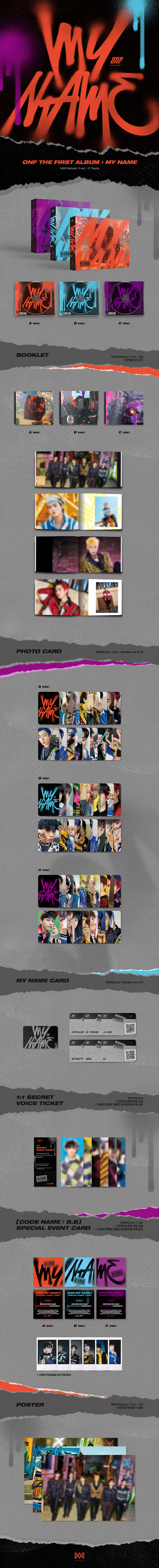 - ONF THE FIRST ALBUM : MY NAME : 143 X 124 (mm) / 3 ver. / 11 Tracks
